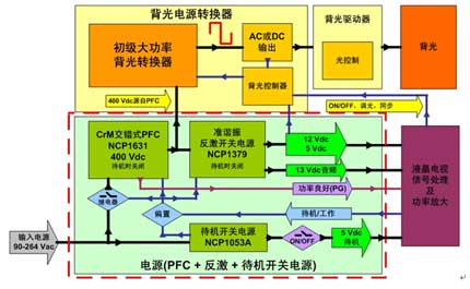 圖2:安森美半導體32英寸高壓LIPS液晶電視電源GreenPoint?參考設計功能框圖
