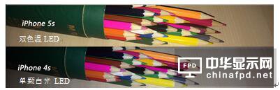 目前很多智能手機(jī)采用藍(lán)色LED+熒光粉來產(chǎn)生白光設(shè)計(jì),然而這種設(shè)計(jì)使得光譜中藍(lán)色成分較多,綠色和紅色光較少,拍出來的照片顏色失真,色調(diào)偏冷。緊接著雙色溫LED閃光燈解決了這個(gè)問題,即采用一枚高亮白色LED閃光燈配合一枚亮度稍暗的琥珀色LED暖色燈來達(dá)到色溫補(bǔ)償?shù)男Ч⑻嵘伺恼债嬞|(zhì)的真實(shí)性,如圖3。