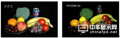 對(duì)比圖4在自然光和某手機(jī)閃光燈下的果蔬顏色,該閃光燈的一般顯指Ra不錯(cuò),為77.25,但R9為-9.26,這與閃光燈下果蔬紅色表現(xiàn)不佳(橙子不夠橙,西紅柿偏暗紅色)的現(xiàn)象是對(duì)應(yīng)的。