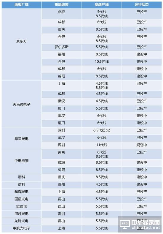 中國顯示面板企業的品牌及擁有代線對應情況