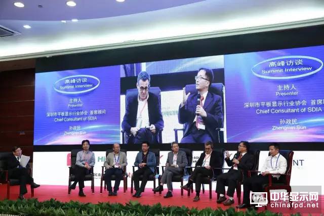 深圳市平板顯示行業(yè)協(xié)會首席顧問孫政民主持了本屆峰會的最后環(huán)節(jié)——高峰訪談,邀請了TCL多媒體首席技術(shù)官陳光郎、南方科技大學工學院執(zhí)行院長孫小衛(wèi)、南京理工大學教授曾海波、納晶科技總經(jīng)理高磊生、Nanosys大中華區(qū)總經(jīng)理羅忠升、Nanoco COO Keith Wiggins、海信集團多媒體研發(fā)中心顯示研究開發(fā)部李富琳七位嘉賓從各自的角度分享了量子點技術(shù)研發(fā)應(yīng)用成果以及未來發(fā)展走向。