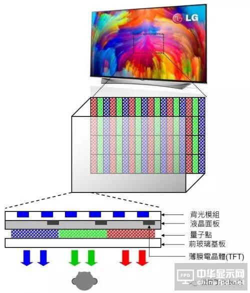 ▲ 圖六:量子點電視(QD-TV)構(gòu)造示意圖。