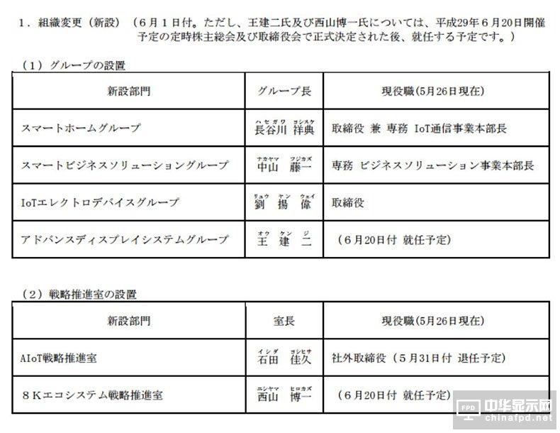 當然從日本夏普的角度來看,由于已完成新的管理結構,可以觀察到先進顯示事業及8K生態系統戰略推進室,分別由前鴻海集團觸控模塊廠GIS董事暨執行副總王建二及原NHK理事西山博一擔任,再顯示重整夏普顯示器霸主的地位,是集團戰略首要目標,因此進一步強化顯示技術。
