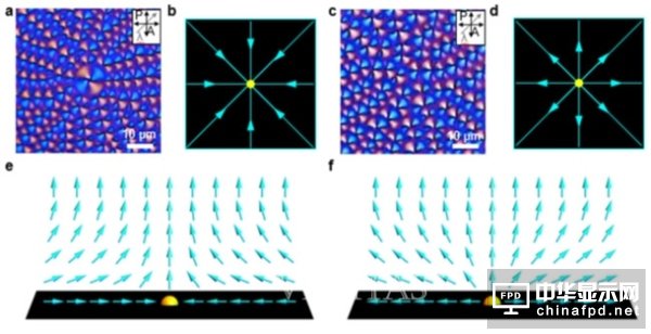 KAIST的相關人士補充稱,液晶材料形成的缺陷構造以一個奇點為中心,可以呈現放射形、圓形、螺旋形等形態。