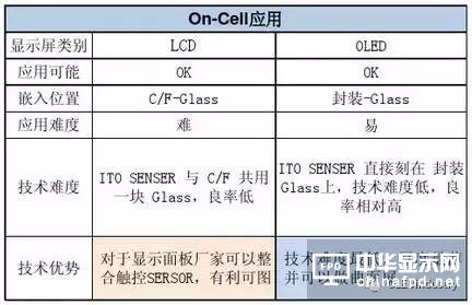 相比in-cell,On-Cell多了一層觸控層,厚度會有一定的增加,顯示效果有有限的優(yōu)勢,In-Cell在像素內(nèi)嵌入觸摸傳感器,可利用于顯示的面積部分便會減少,這在一定程度上會導致畫質(zhì)劣化。