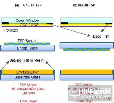 On-Cell 主要應用于 Super AMOLED 面板,技術(shù)較為成熟。