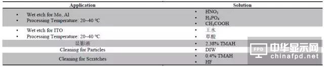 Table 2 Display 生產(chǎn)中常用的幾種溶液(2)