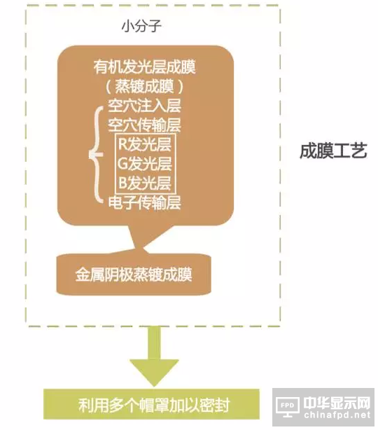 在薄膜制備階段,采用小分子或者高分子的有機材料的過程是不一樣的,小分子材料器件采用多層構造,通過真空蒸鍍的方法形成注入層/發光層等薄膜。而高分子材料采用的則是單層構造。