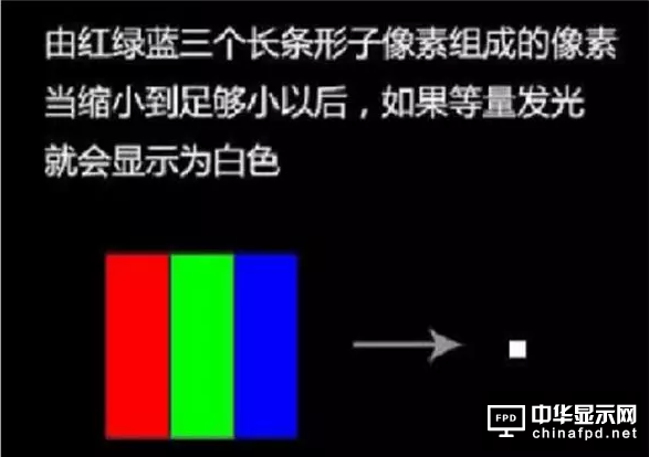 也就是說,3個子像素構成一個整體,即彩色像素。當需要顯示不同顏色的時候,三個子像素分別以不同的亮度發光,由于子像素的尺寸非常小,在視覺上就會混合成所需要的顏色。