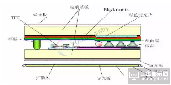 下偏光片用于將背光源產生的光束轉換為偏振光,上偏光片用于解析經液晶電調制后的偏振光,產生明暗對比,從而產生顯示畫面。