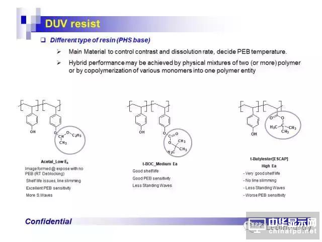 光刻膠的基本骨架,是其中占比最大的組分,主要決定曝光后光刻膠的基本性能,包括硬度、柔韌性、附著力、曝光前后對溶劑溶解度的變化程度、光學性能、耐老化性、耐蝕刻性、熱穩(wěn)定性等。