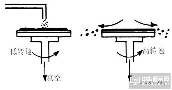 光刻膠的涂覆常用方法是旋轉涂膠法: