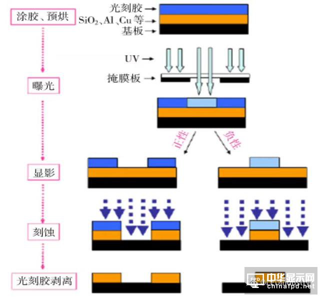 曝光前對顯影液不可溶,而曝光后變成了可溶的,能得到與掩模板遮光區(qū)相同的圖形。