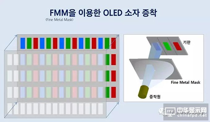 而FMM就是在LTPS光盤下面帶上的精細的金屬掩模。掩膜是一種在薄鋼板上有一個小孔的器件,當(dāng)沉積有機材料時只能沉積在特定位置。如果您不使用蒙版,則通過將紅色,綠色和藍色放在紅色(R)像素上,將無法獲得純色。因此,在沉積過程中不同的時間使用RGB的每個位置和形狀的不同掩模。