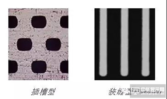 從FMM 開孔形狀來區(qū)分, 根據(jù)FMM 的開孔形狀的不同, FMM 可以再進一步細分為插槽型 和 狹縫型。