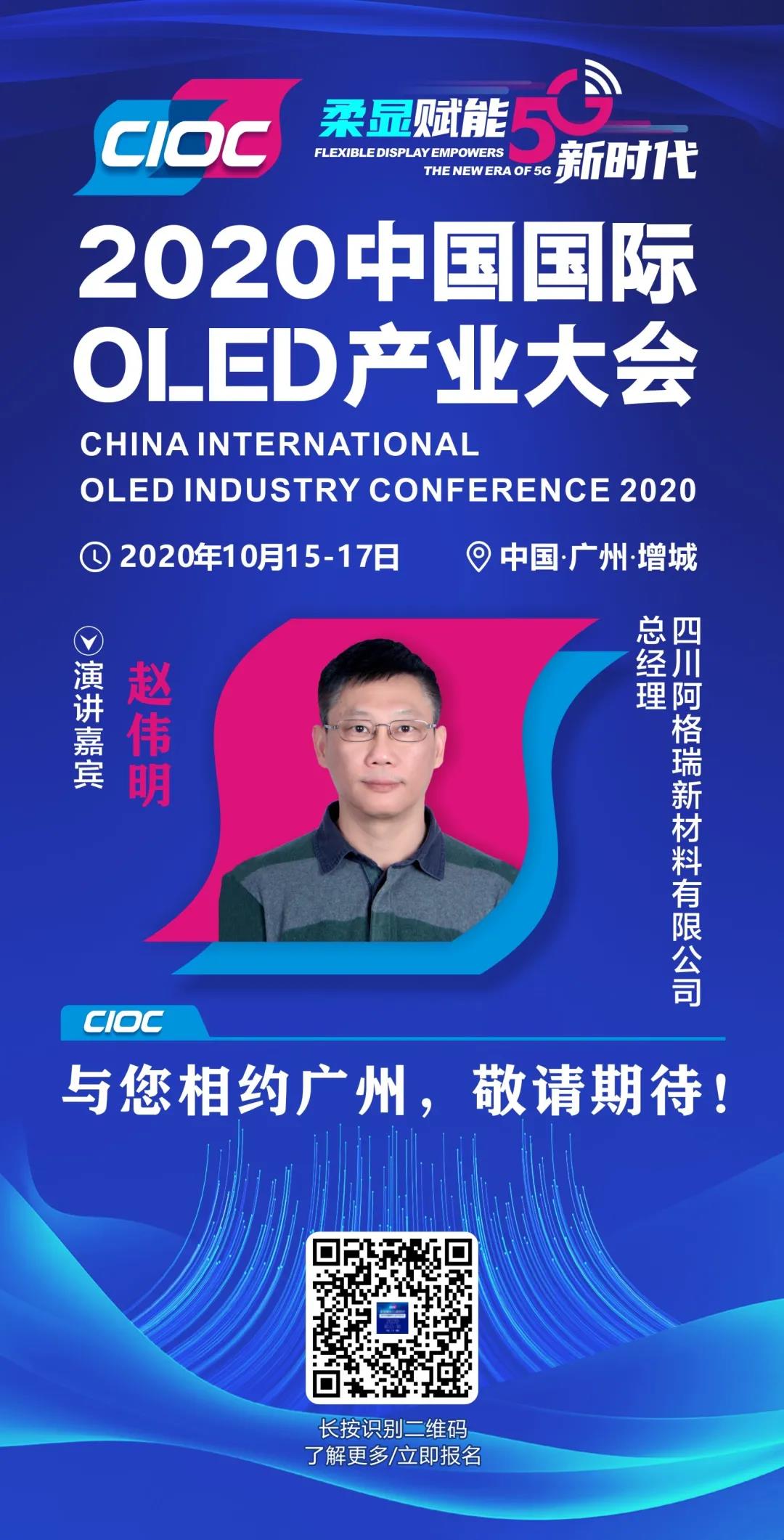 四川阿格瑞新材料有限公司總經理趙偉明已確認出席2020中國國際OLED產業大會。