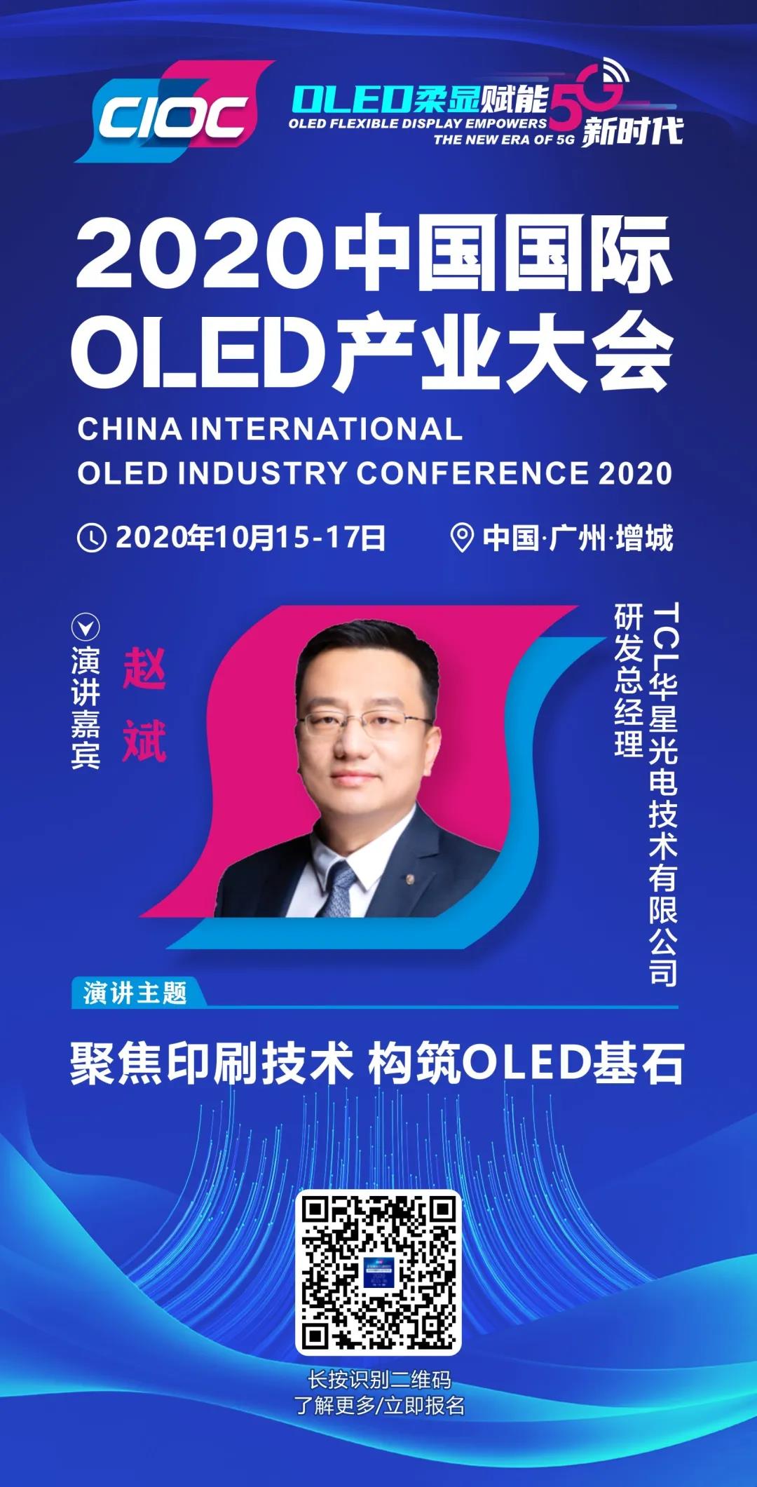 TCL華星光電技術有限公司研發總經理趙斌已確認出席2020中國國際OLED產業大會。