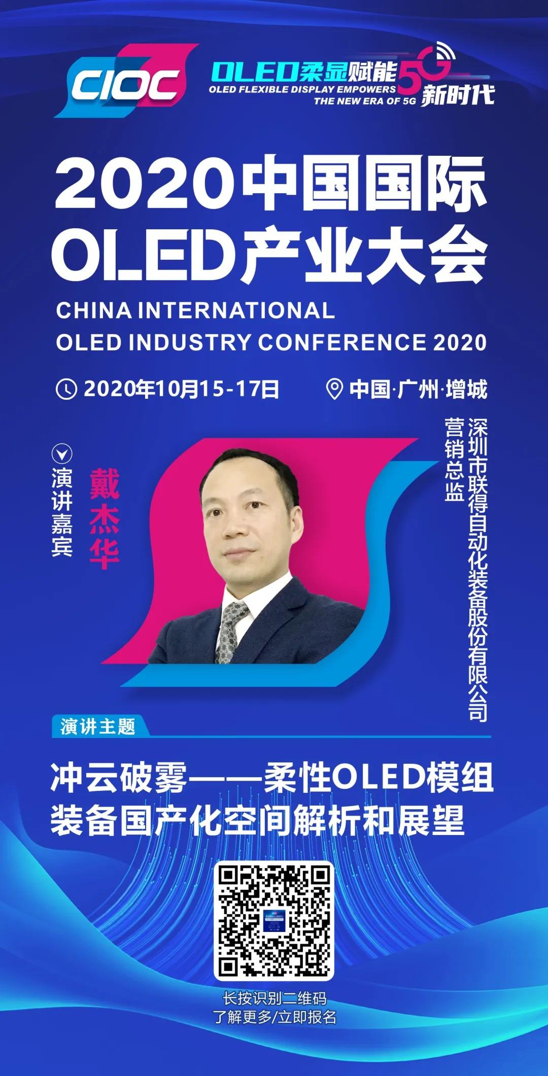 深圳市聯得自動化裝備股份有限公司營銷總監戴杰華已確認出席2020中國國際OLED產業大會。