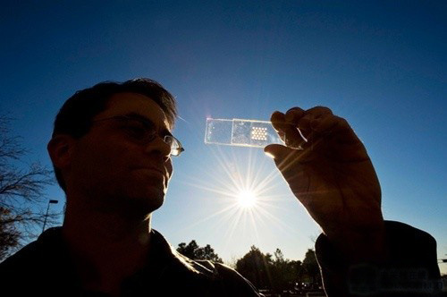 其實,這是美國桑迪亞國家實驗室新研究出來的新型單晶硅。這種新型硅晶體的出現,很可能在太陽能電池研究發展上起到相當大的作用。用這種晶體制作的太陽能電池與目前太陽能電池相比,它可以在釋放同等能量的條件下,體積僅僅是原來的十分之一。