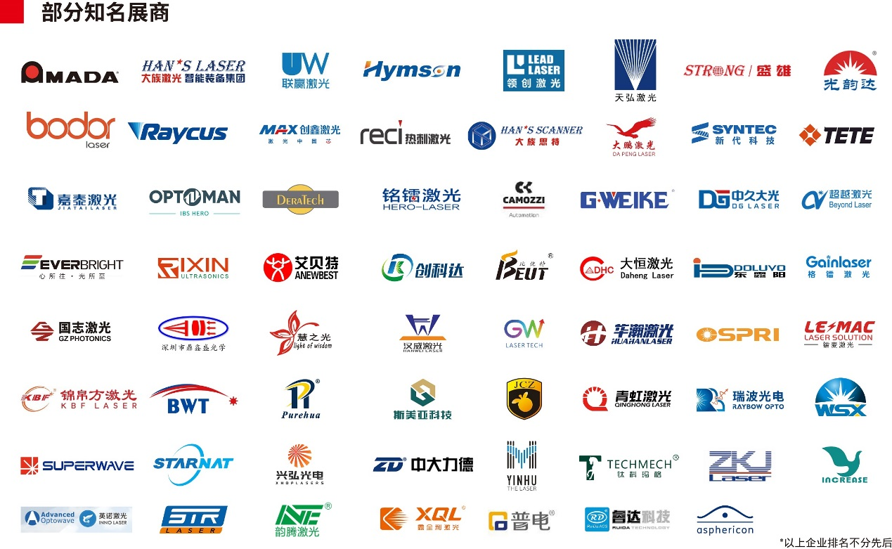 天田、大族、華工、宏山、海目星、迅鐳、智能普睿瑪、領創、天弘、邦德、盛雄、光韻達、恩耐、Novanta、利澤萊恩、銳科、創鑫、熱刺、華瑞、海富光子、昂納、飛博、瑞豐恒、大科、光威、聯品、羅根、嘉強、崗春、聯贏、逸飛、泰德、大族思特、菲鐳泰克、鼎鑫盛、卡門哈斯、新代科技等。