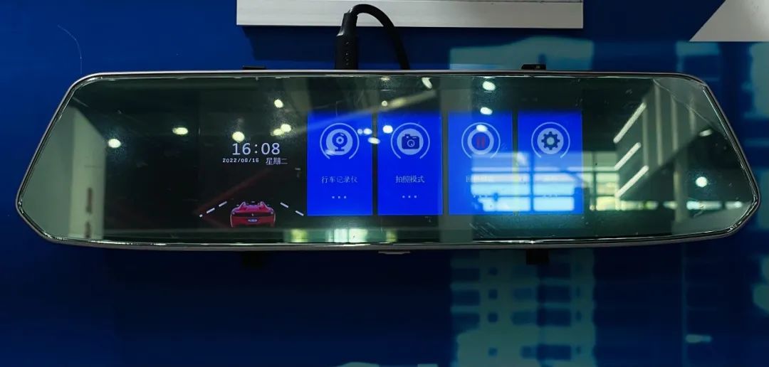 應用于后視鏡顯示屏,采用超窄邊框設計,高屏占比高分辨率提升視覺效果,采用異形切割,全屏顯示,提升整機流暢感。