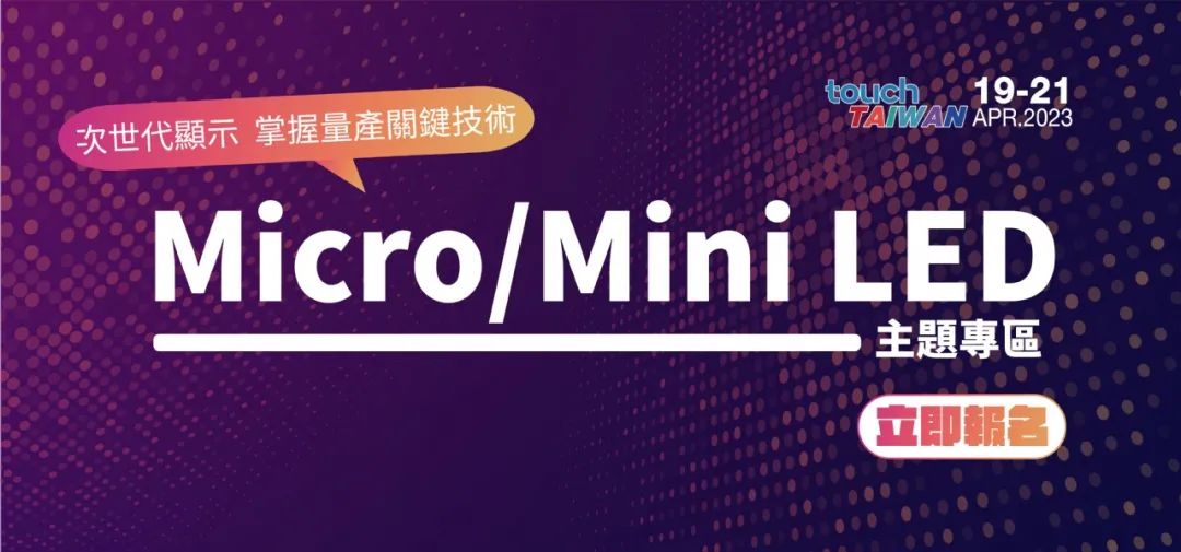 2022 Touch Taiwan展覽上,“Micro & Mini LED專區”有富采控股領軍旗下公司晶元光電、隆達電子、晶成半導體、元豐新科技及葳天科技共同展出,其他重量級參展商包括镎創科技、漢民科技、達運精密、達興材料、聚積、東捷、錸寶、晶彩、Toray Engineering、Kulicke & Soffa以及ASM Pacific,首度參展亮相的有斯托克精密、Coherent、PORO TECH及法國新創公司Aledia,大秀Micro/Mini LED商機。