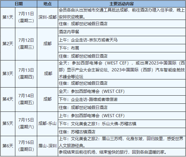 此次活動之行,SDIA還將與成都當?shù)刂陌雽w顯示企業(yè)緊密聯(lián)系,組織實地考察與參觀,開展產(chǎn)業(yè)對接,加深溝通交流等,為您量身訂制專屬參展、參團方案,讓您此次旅程事半功倍。