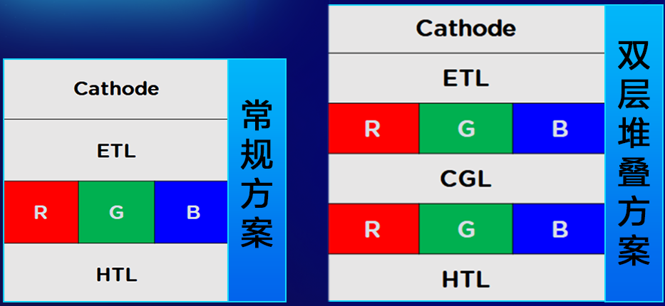 常規(guī)方案VS 京東方Tandem雙層堆疊方案