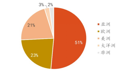 2023年LED顯示屏出口遭遇挑戰(zhàn)。根據(jù)海關(guān)最新數(shù)據(jù),2023年中國LED顯示屏出口額為102.54億元,相比2022年同比下降7.4%。從地區(qū)來看,亞洲市場份額占到出口總額一半,其中東南亞市場、中東市場活躍,其次是歐美、南美洲等地區(qū)。2023年LED顯示屏出口下滑的原因我們認為是受到全球經(jīng)濟疲軟和地緣政治風險,而東南亞、中東等新興市場可能會成為國內(nèi)LED廠商出口的重要目的地。