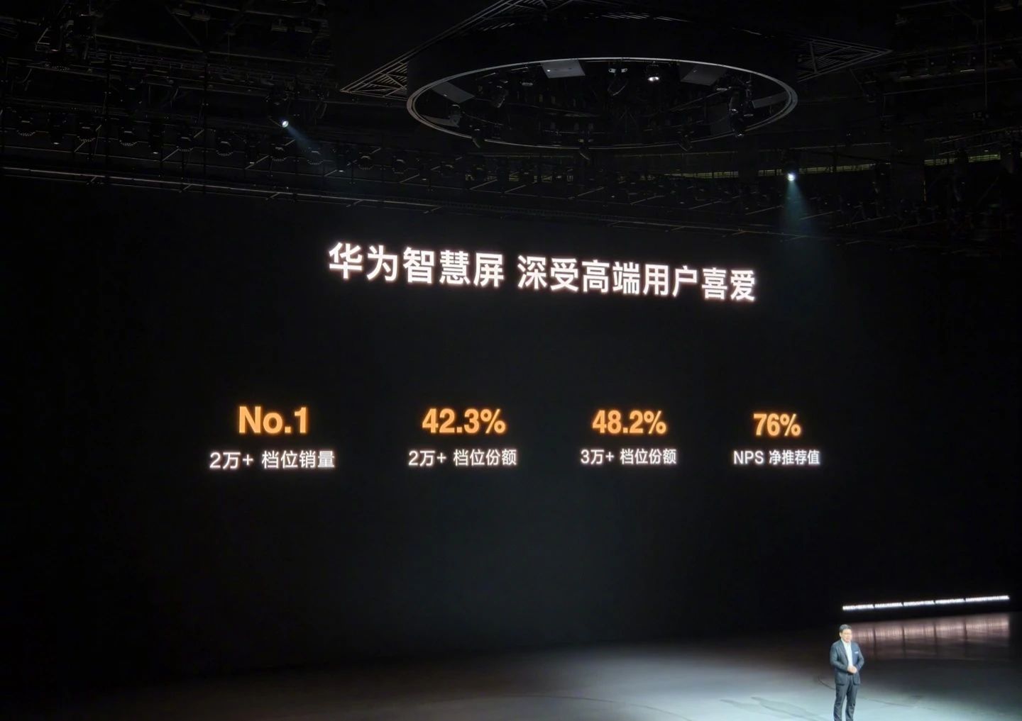 此外,華為常務董事、終端 BG 董事長、智能汽車解決方案 BU 董事長余承東在發(fā)布會現場表示,華為智慧屏在 2 萬 + 檔位份額第一,銷量份額 42.3%,3 萬 + 檔位份額 48.2%,NPS 凈推薦值為 76%。