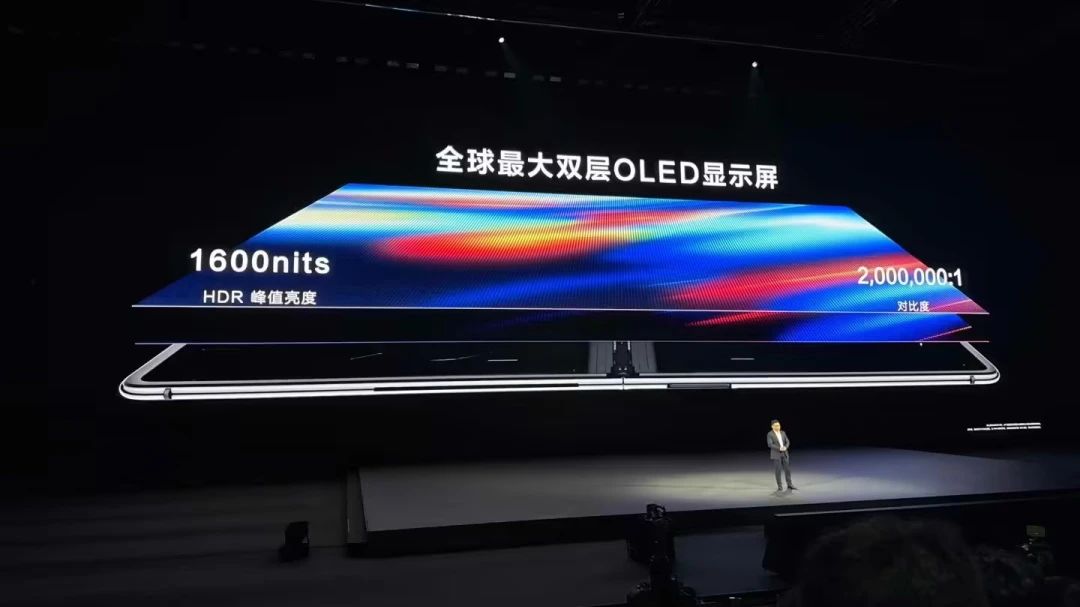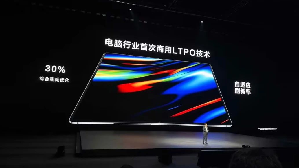 屏幕方面,配備全球最大雙層OLED顯示屏,擁有1600尼特HDR峰值亮度和2000000:1對比度,支持P3廣色域自適應(yīng)色彩管理,號稱是電腦行業(yè)首次商用LTPO技術(shù),支持自適應(yīng)刷新率,實現(xiàn)30%綜合能耗優(yōu)化,屏幕使用碳纖維支撐層,號稱抗沖擊能力提升3倍。