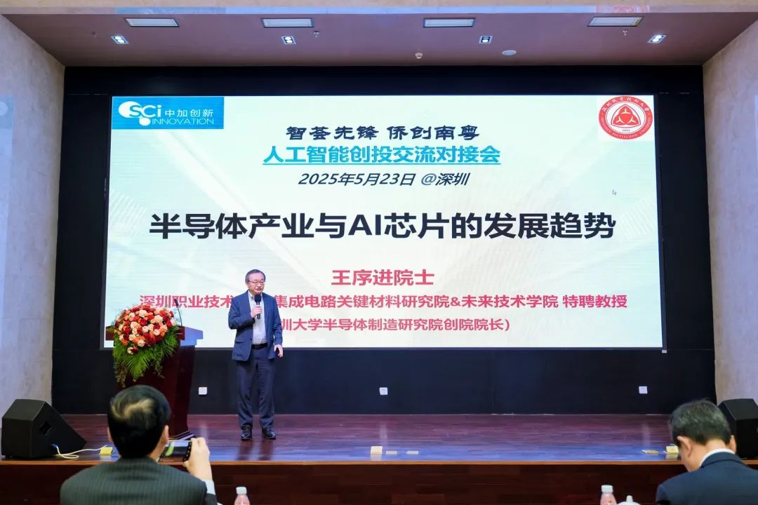 在交流會上,加拿大工程院院士、清華大學深圳研究生院張曉平與深圳大學半導體制造研究院創院院長、深圳職業技術大學特聘教授王序進院士進分別以《人工智能與數據賦能——認知的邊界》、《半導體產業與AI芯片的發展趨勢》為題發表主旨演講,從數據要素與硬件基石兩大維度,揭示AI技術演進的底層邏輯與產業變革路徑。兩位院士的洞見揭示了AI產業發展的雙重邏輯:數據要素驅動認知智能突破,半導體技術夯實算力底座。正如現場嘉賓所言,當數據治理與芯片革新形成協同效應,AI將加速從實驗室走向千行百業,真正成為重塑產業格局的核心生產力。此次院士講演不僅展現了技術前沿的深度,更勾勒出AI與實體經濟融合的清晰路徑,為僑界科創力量投身產業發展提供了有力支持。
