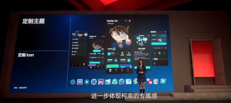 其中,雷鳥X3 Pro柯南限定版基于最新旗艦AR眼鏡打造,采用標志性藍色,鏡腿轉軸處配有蝴蝶結、瞄準鏡等元素,還有柯南定制收納盒。軟件定制方面,配有獨特的瞄準拍照界面,手機App和眼鏡界面都采用了定制設計,還有定制的消息提示音、開機音樂、拍照音。