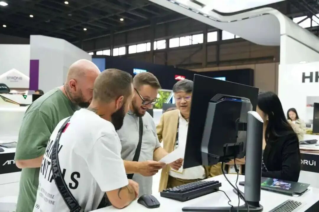 本次展會,惠科股份展示了其在顯示技術領域的深厚實力和創(chuàng)新成果。HKC 品牌的 MiniLED系列產品尤為引人注目,憑借著卓越的對比度、出色的色彩還原能力以及高亮度表現,為觀眾帶來了極致的視覺體驗。MiniLED 技術作為當下顯示行業(yè)的前沿技術,HKC 在這一領域的深入布局和領先優(yōu)勢,無疑成為了展會現場的焦點。