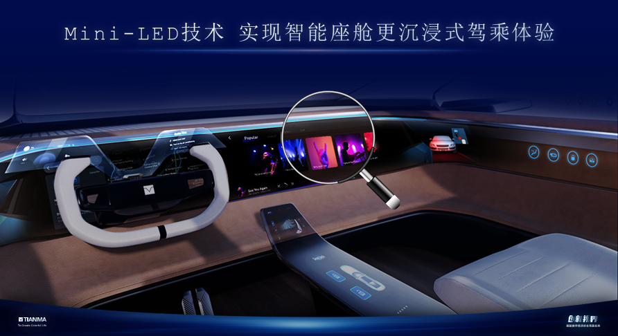 Mini LED技術(shù),針對(duì)不同顯示內(nèi)容通過(guò)局部調(diào)光實(shí)現(xiàn)光線控制,可使顯示效果底色更黑、對(duì)比度更高、功耗更低、更省電,和黑色內(nèi)飾融為一體,駕駛者沉浸式駕乘體驗(yàn)感更強(qiáng)。作為顯示行業(yè)領(lǐng)先企業(yè),天馬在Mini LED技術(shù)上布局多年,技術(shù)方面不斷取得突破,多次榮獲行業(yè)獎(jiǎng)項(xiàng),產(chǎn)品已大量應(yīng)用在多款車(chē)型上。