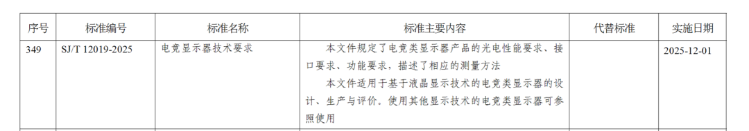 近日,由TCL華星牽頭制定的《電競顯示器技術要求》(SJ/T 12019-2025)行業標準,經中華人民共和國工業和信息化部公告發布(2025年第19號)。該標準由全國音頻、視頻及多媒體系統與設備標準化技術委員會(SAC/TC242)歸口,聯合中國電子技術標準化研究院、聯想、小米、泰瑞特檢測等顯示行業企業共同編制,首次為電競顯示器產品建立系統的技術規范體系。