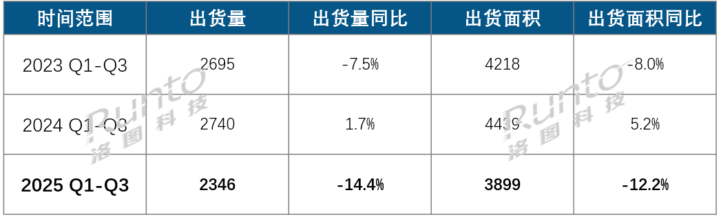 數據來源:洛圖科技(RUNTO),單位:千片,千平方米,%
