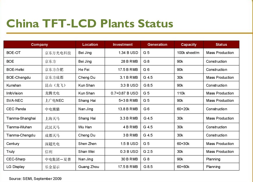 中國TFT-LCD廠概況