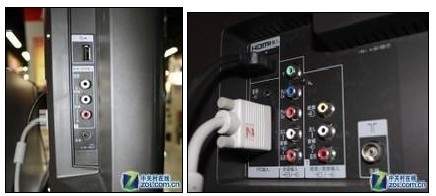 在接口方面,夏普32G120A液晶電視配置齊全,主流的HDMI接口、AV接口、色差分量接口以及VGA接口等分布均勻,另外考慮到產品的擺放,夏普32G120A液晶電視還在機身的側面增設了多組接口,充分滿足了用戶的使用。