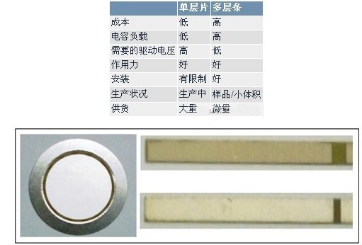 表1.單層和多層壓電驅(qū)動(dòng)器的優(yōu)勢(shì)對(duì)比