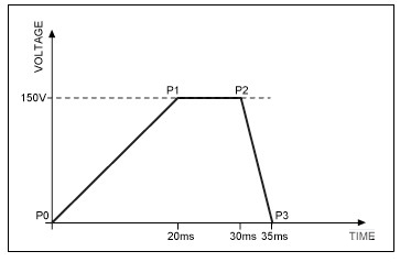 圖5展示了一個(gè)典型的觸感波形圖,波形模擬了對(duì)一個(gè)機(jī)械按鍵按壓和釋放的感覺(jué)。波形的上升沿,P0到P1,反映了按壓的觸覺(jué)響應(yīng);下降沿,P2到P3,反映了釋放的觸覺(jué)響應(yīng)。從P1到P2的時(shí)間是用戶按住機(jī)械按鍵的持續(xù)時(shí)間,由用戶決定。