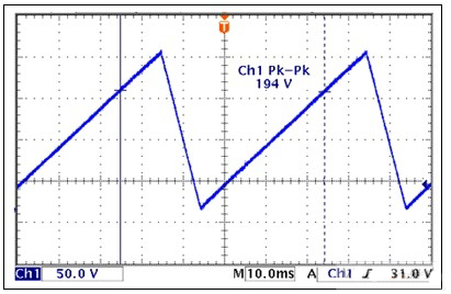 MAX11835觸覺(jué)驅(qū)動(dòng)控制器對(duì)各種壓電驅(qū)動(dòng)器和高壓電容的功耗進(jìn)行了測(cè)量。MAX11835可以回放boost轉(zhuǎn)換器反饋環(huán)路中軟件控制的存儲(chǔ)波形,測(cè)試波形包括100Hz正弦波和20Hz斜坡。