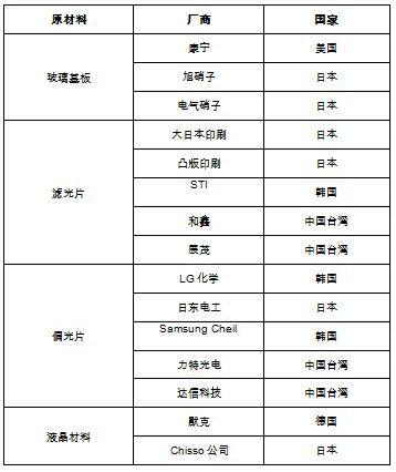 表2 全球主要液晶面板原材料供應商